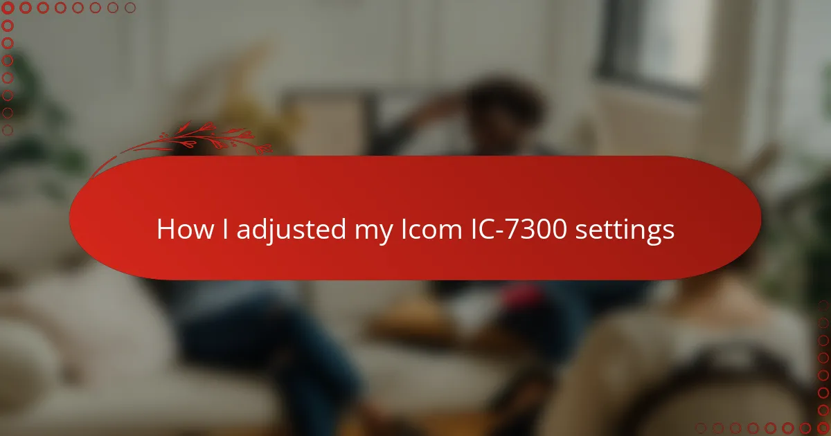 Setting the frequency on the IC-7300 felt like tuning into a secret conversation hidden in the airwaves. I learned quickly that precision was key—just a few kilohertz off, and I could miss my target signal entirely. Have you ever experienced that moment when turning the dial slowly makes the static suddenly clear into a voice? That’s the magic of getting the frequency just right.